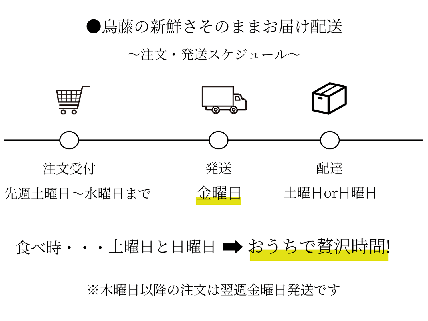 いただいたご注文は土曜日・日曜日にお届けできるエリアに限定しているため、全国へのお届けはできません。